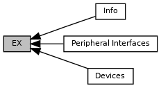 Under ChibiOS the set of the complex device driver interfaces dedicated to external peripherals is called the EX subsystem. The EX resides on top of EX and is actually a set of libraries for external devices like MEMS, Displays, Flash memories and so on. These libraries are the implementation of one or more Abstract Interfaces brought by EX subsystem. EX also relies on EX normal drivers to interface the peripherals.