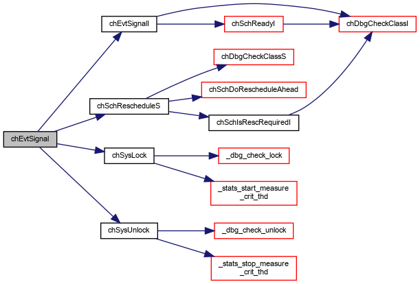 References chDbgCheck, chEvtSignalI(), chSchRescheduleS(), chSysLock(), and chSysUnlock().