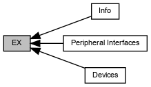 Under ChibiOS the set of the complex device driver interfaces dedicated to external peripherals is called the EX subsystem. The EX resides on top of EX and is actually a set of libraries for external devices like MEMS, Displays, Flash memories and so on. These libraries are the implementation of one or more Abstract Interfaces brought by EX subsystem. EX also relies on EX normal drivers to interface the peripherals.