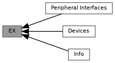 Under ChibiOS the set of the complex device driver interfaces dedicated to external peripherals is called the EX subsystem. The EX resides on top of EX and is actually a set of libraries for external devices like MEMS, Displays, Flash memories and so on. These libraries are the implementation of one or more Abstract Interfaces brought by EX subsystem. EX also relies on EX normal drivers to interface the peripherals.