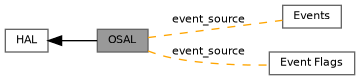 The OSAL API closely resembles the ChibiOS/RT API, for obvious reasons, however an OSAL module can be implemented for any reasonably complete RTOS or even a RTOS-less bare metal machine, if required.