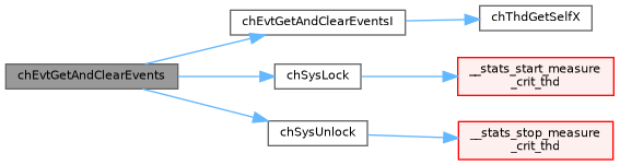 References chEvtGetAndClearEventsI(), chSysLock(), and chSysUnlock().